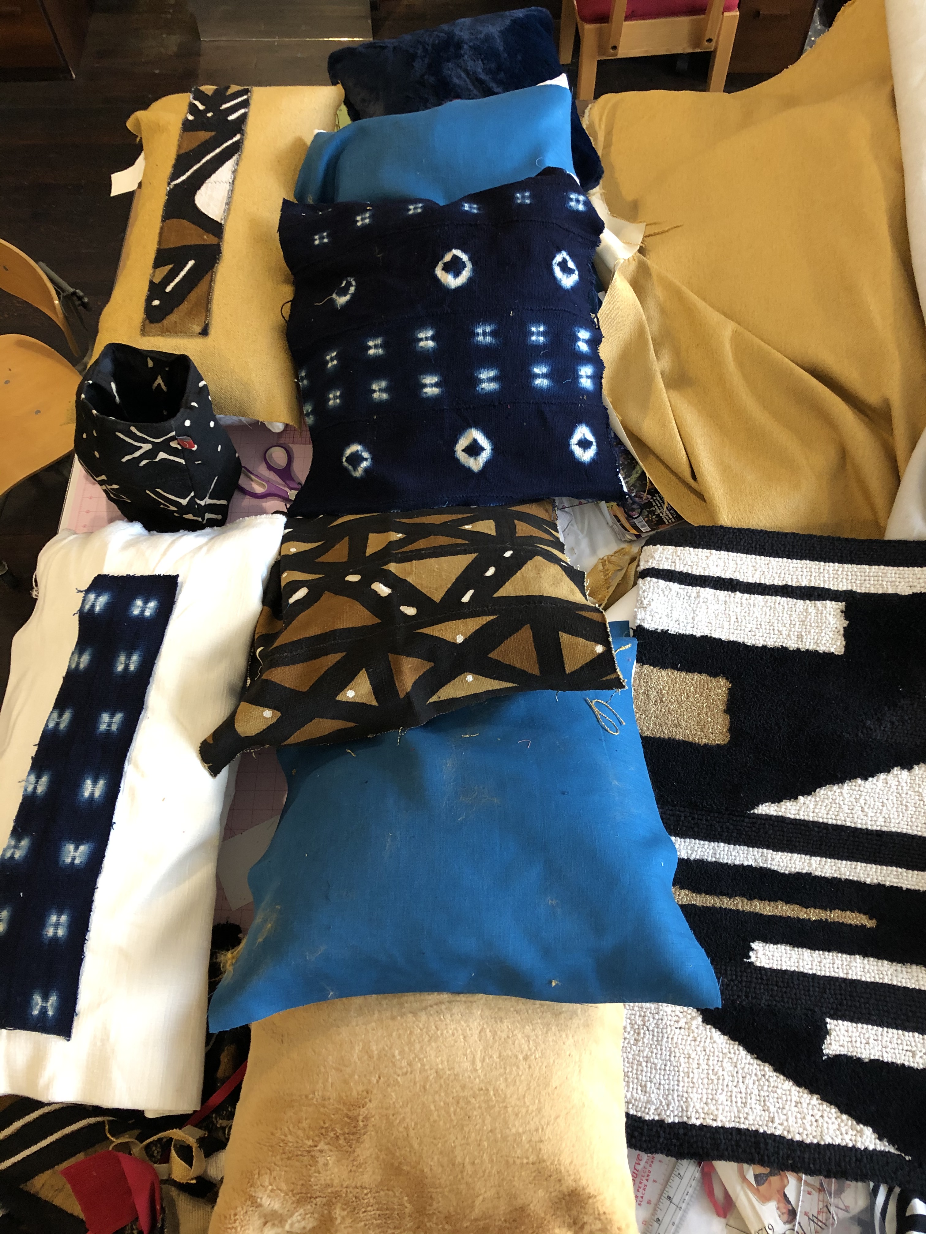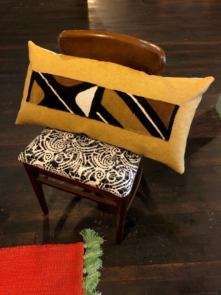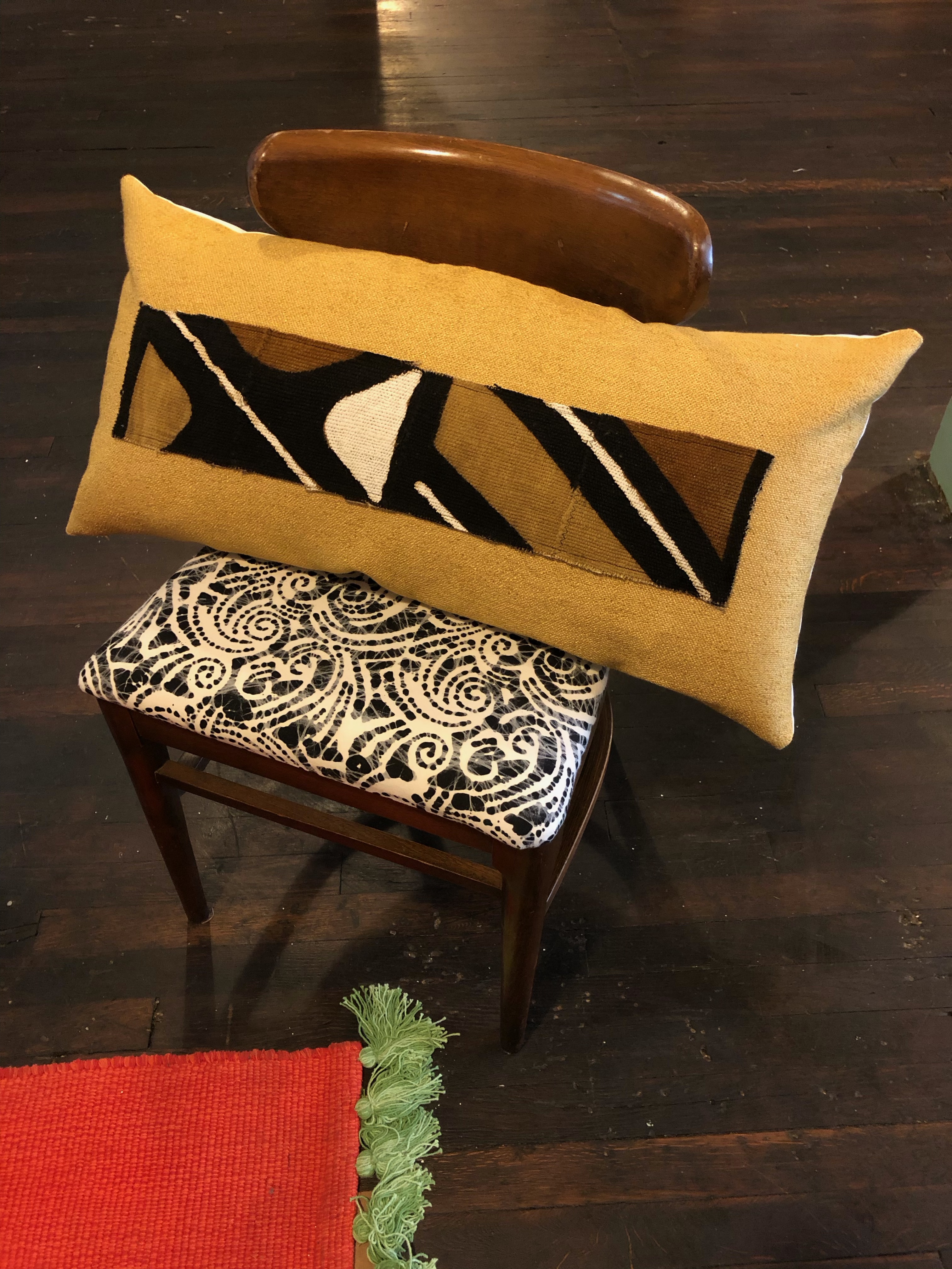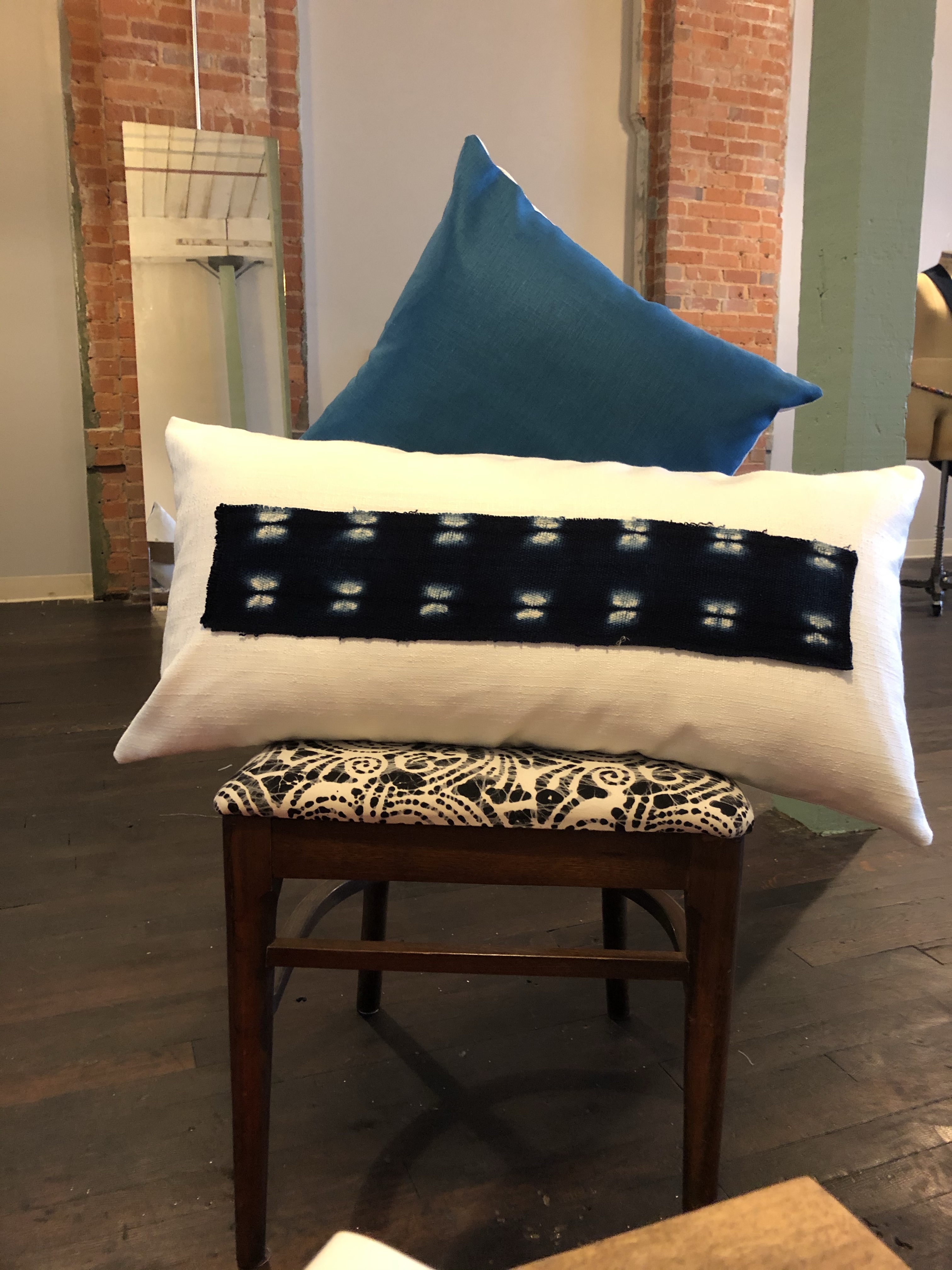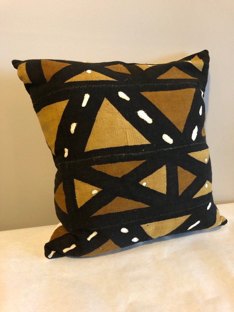 The design of the pillow covers included a designer fabric front, cotton backing with a three button closure, and Mudcloth appliqué.